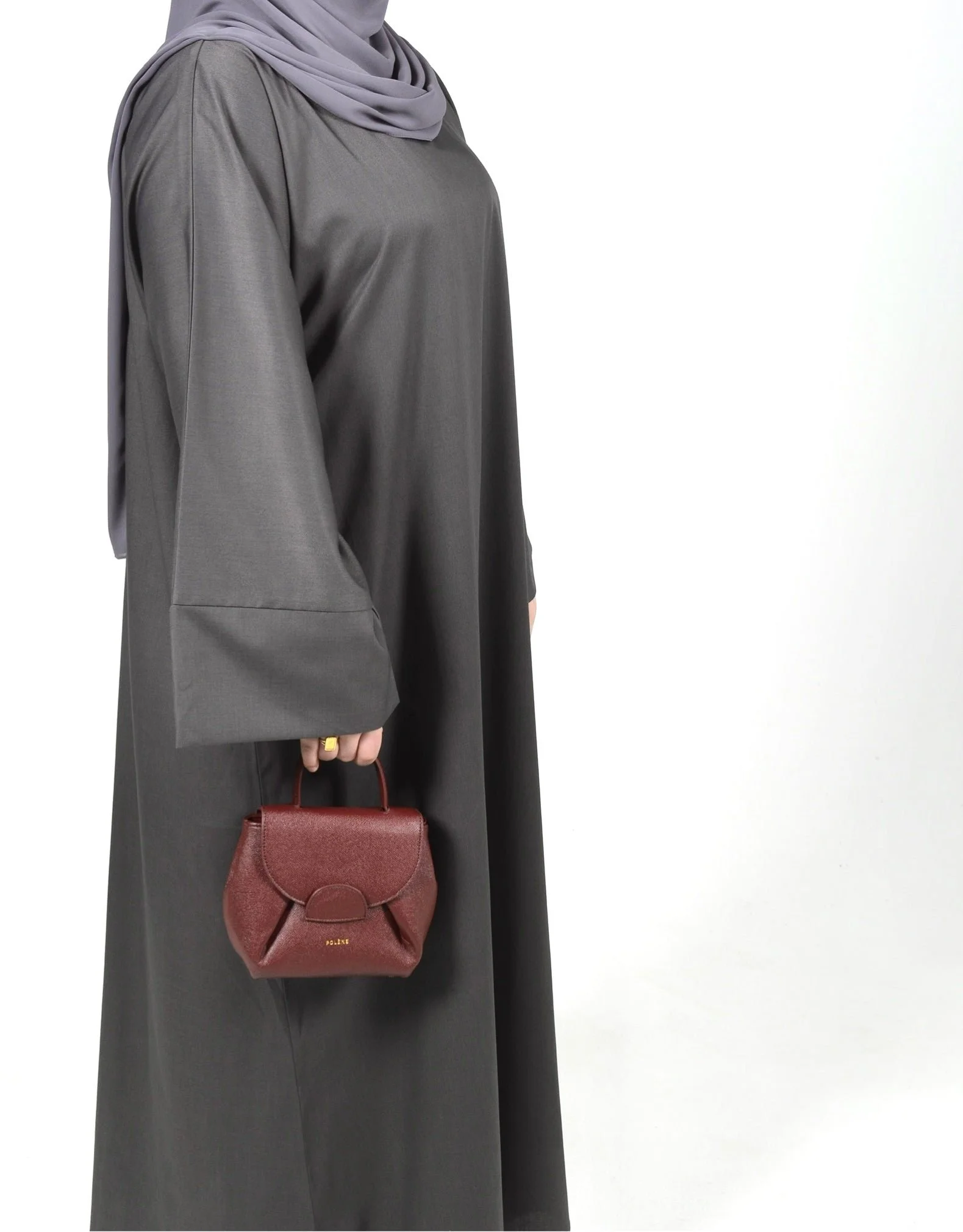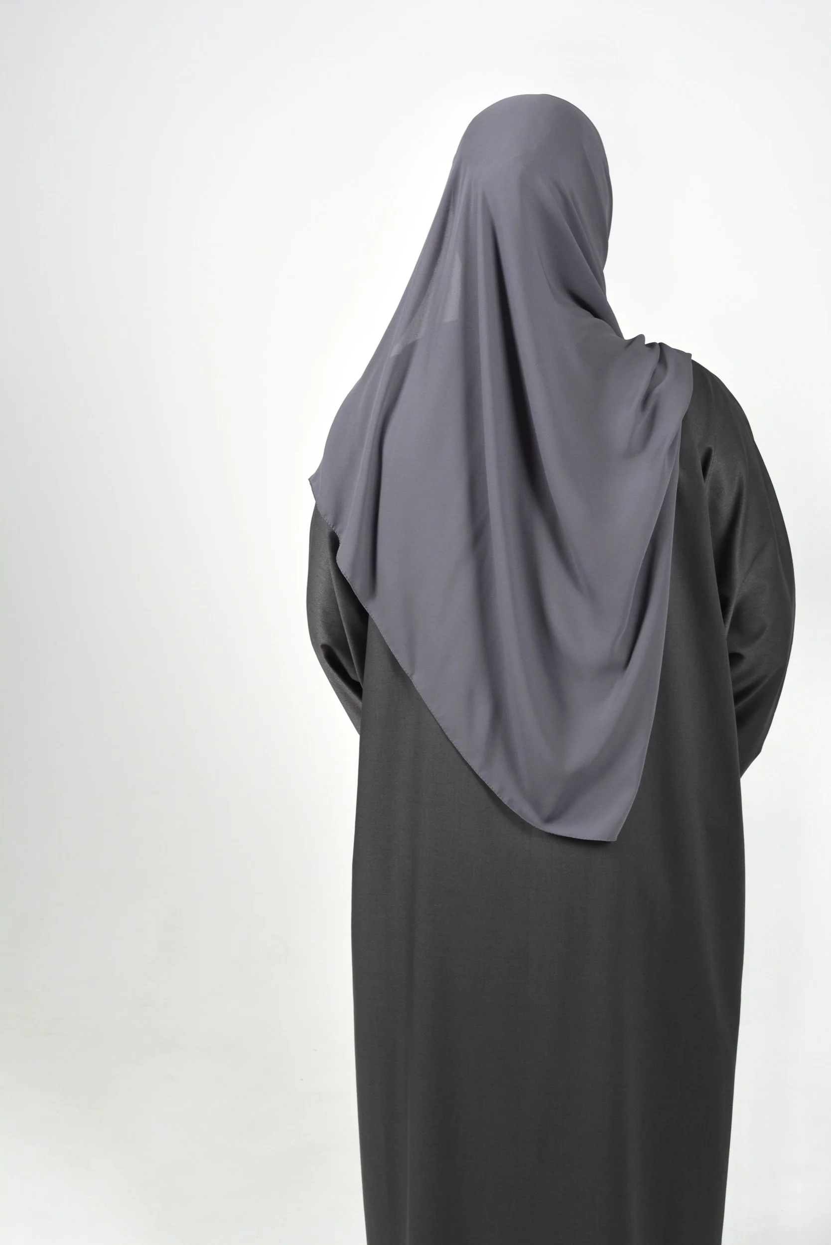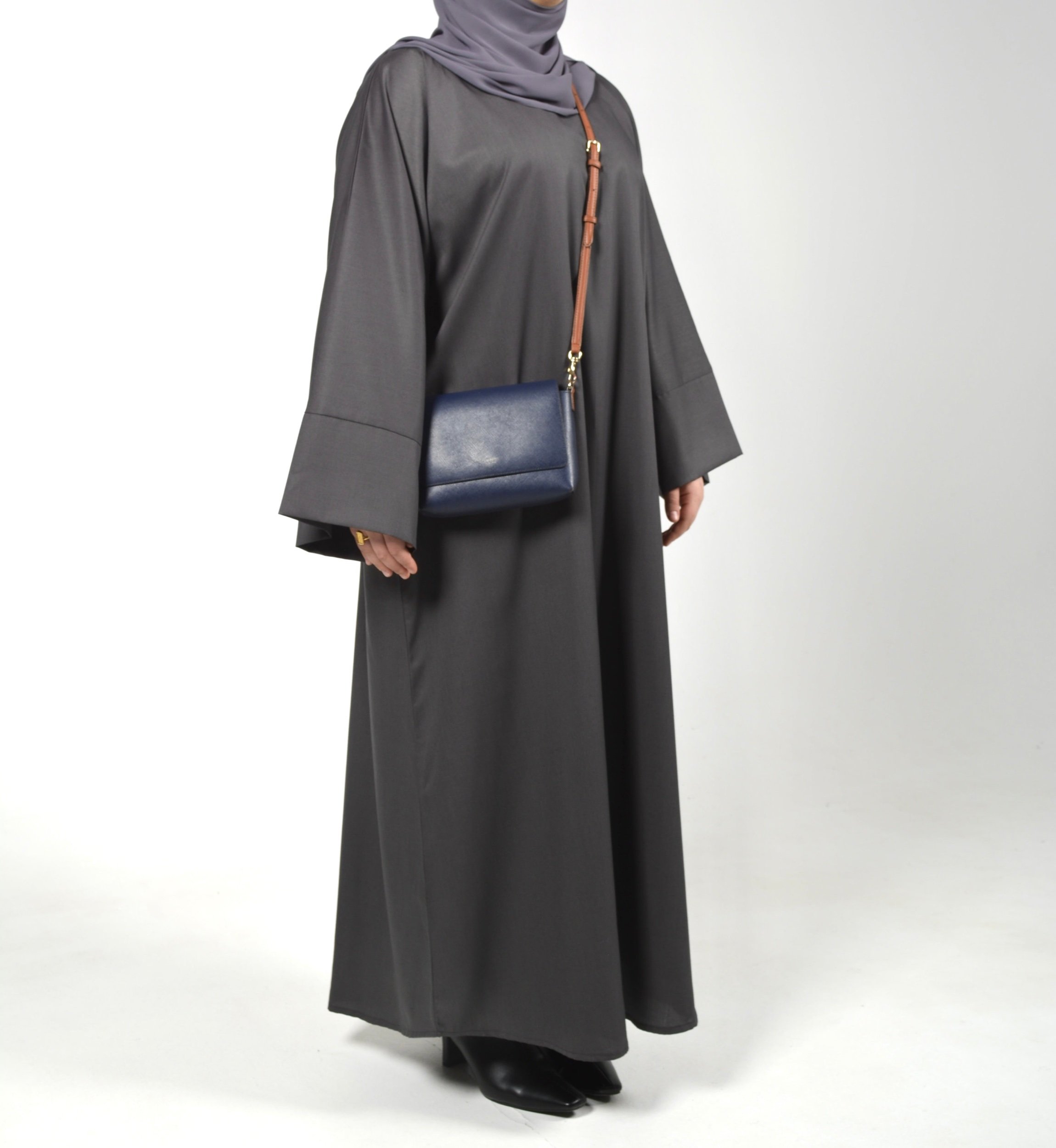 Our premium closed Grey Silhouette Abaya is crafted from high quality fabric that ensures both comfort and a clean, refined look.